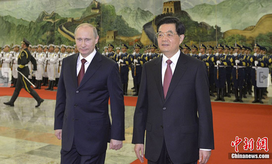 胡錦濤主持儀式歡迎俄總統(tǒng)普京訪華