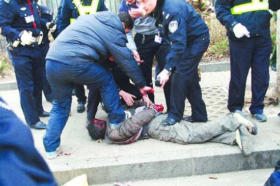 4日上午,泰安市發生一起持槍殺人案。截至記者發稿時,9位受傷的民警和群眾已先后有2名民警、1名協警不幸殉職。兩名犯罪嫌疑人一名被當場抓獲,另一名開槍自殺。 新華社發