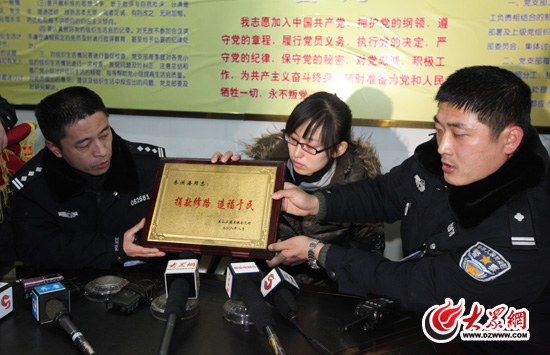 大眾網泰安1月6日訊(記者 曹亮 盛堃)在泰安“1.04”襲警案件中英勇犧牲的交警齊洪海的靈堂設在了泰安市交警支隊直屬二大隊。在今天上午的吊唁活動中,來自泰安市泰山區省莊鎮圣元村委會的代表,參加完吊唁后,他們將在兩年前被齊洪海退回的錦旗和牌匾鄭重地交還給了二大隊的民警。