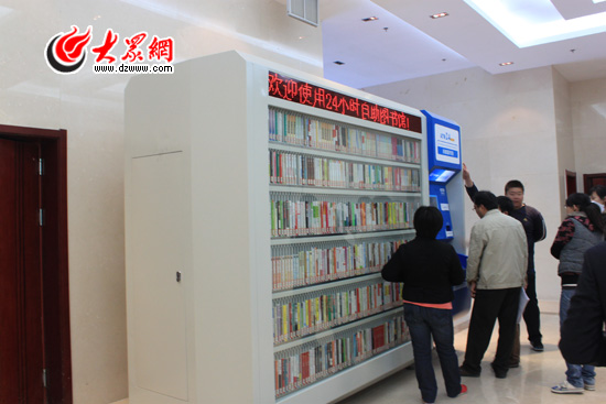 據(jù)悉,24小時自助圖書館是文登市市民文化中心文化建設(shè)的一個重要項目。一臺自助圖書館正常運行時可以容納450本圖書的外借工作,圖書由滾動帶帶動,每幾分鐘就會輪換出現(xiàn)一次,圖書被借出后,會隨時補(bǔ)上新的圖書,這樣就可以有效提高公共圖書館的利用率,來這來借書的人都稱它是“會吐書的ATM機(jī)”。”