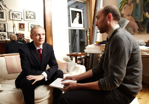 阿桑奇(左)11月11日在倫敦接受《福布斯》專(zhuān)訪